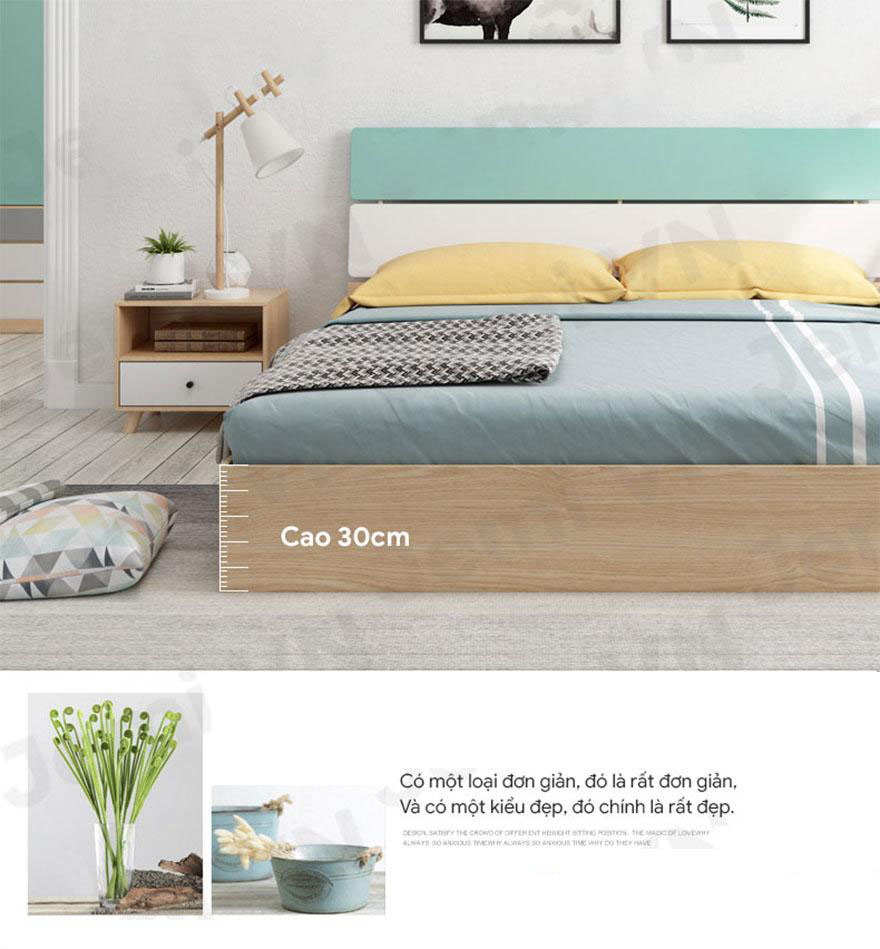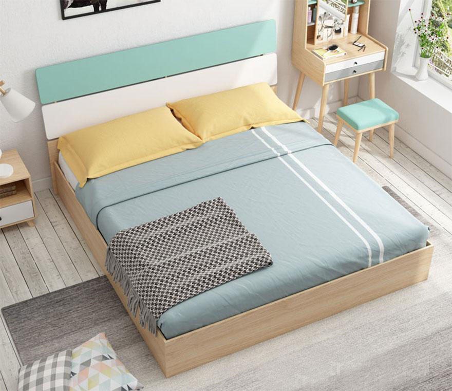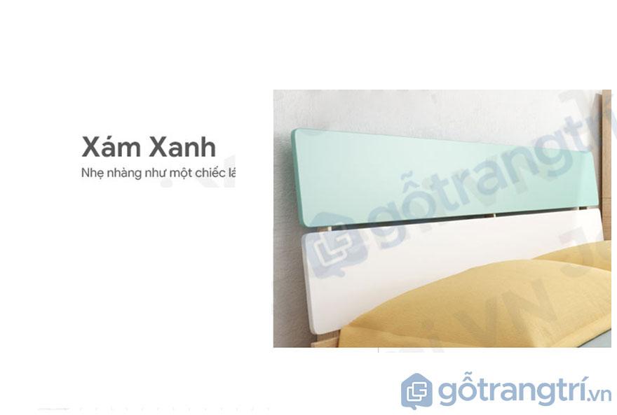 Giường gỗ mdf 1m6 phong cách Bắc Âu G-017 còn có đầu giường phối màu đẹp mắt, nhẹ nhàng tựa như một chiếc lá. Đầu giường có hai tông màu chính là trắng và xanh pastel, tạo nên sự hài hòa và tươi mới cho giường. Màu trắng là màu sắc trung tính, dễ dàng kết hợp với nhiều tone màu khác. Màu xanh pastel là màu sắc của thiên nhiên, mang lại cho bạn cảm giác thanh thản và yên bình. Đầu giường còn có hình dạng cong nhẹ ở bốn góc, như thể là một chiếc lá đang bay trong gió.
