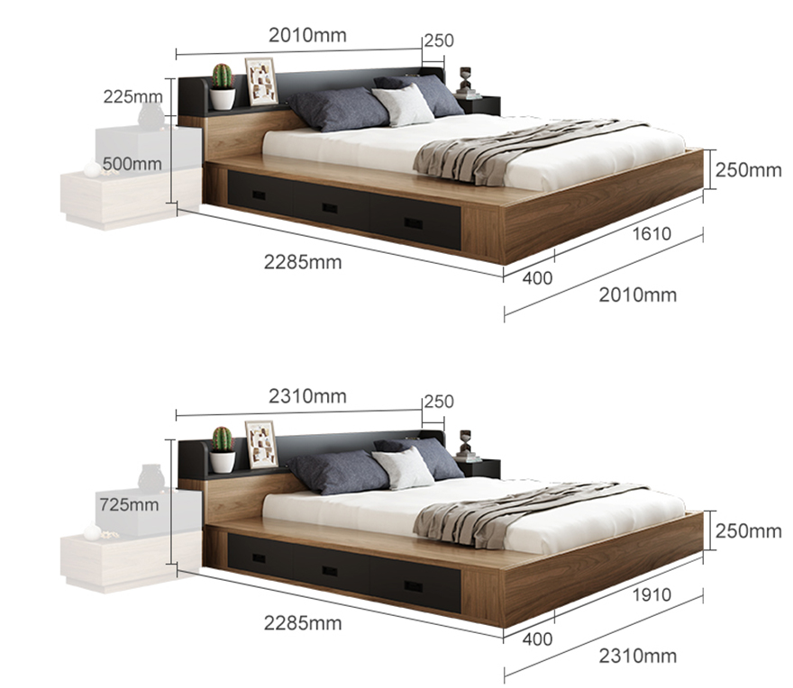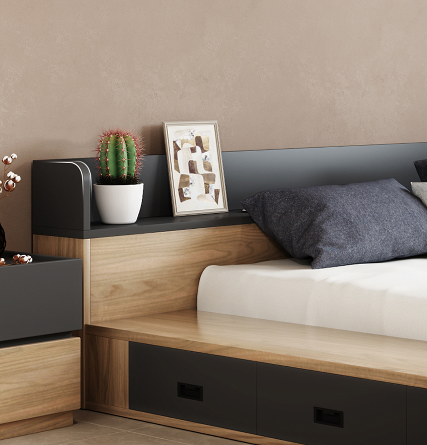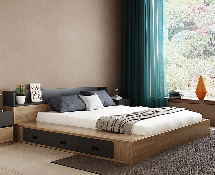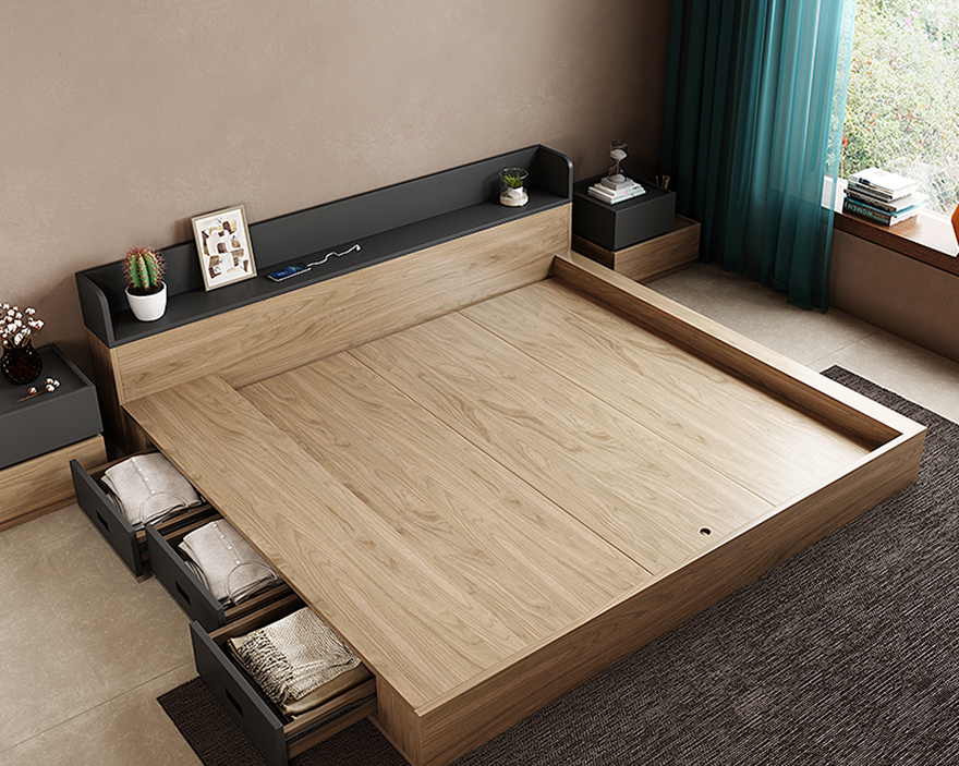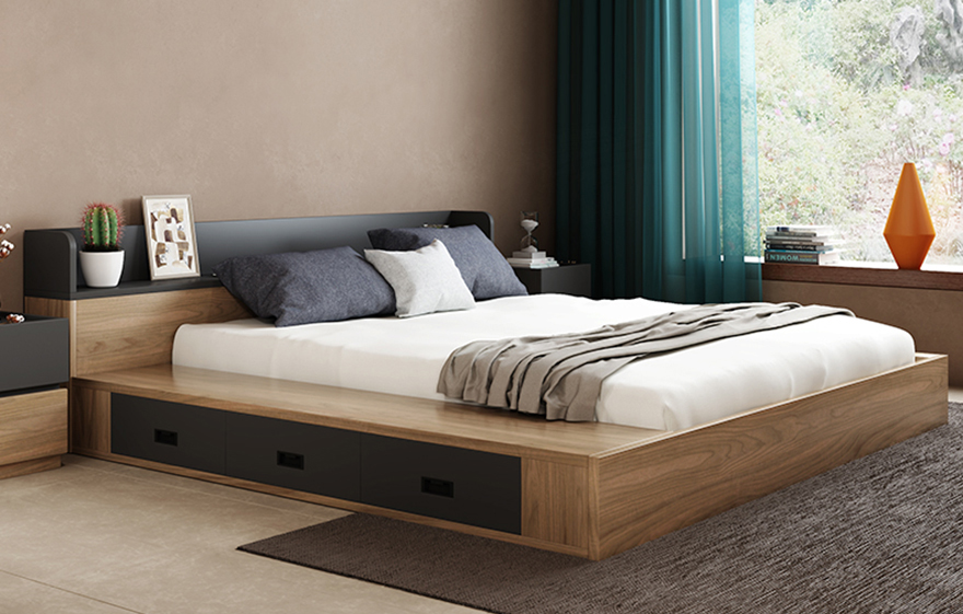 Giường ngủ có ngăn kéo tiện lợi để bạn có thể dễ dàng cất đồ mang lại sự gọn gàng cho không gian phòng ngủ