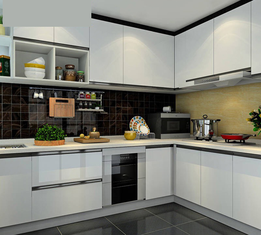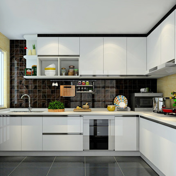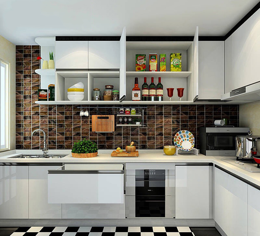 Để tận dụng triệt để không gian, các tủ kệ cần được bố trí theo hình chữ L khớp với các góc cạnh của gian bếp, đối với các kệ tủ không có cửa có thể dùng để trưng bày các loại đồ trang trí đẹp mắt.