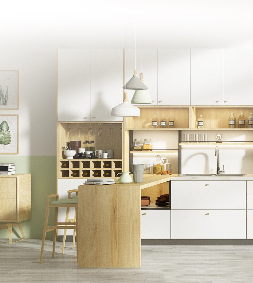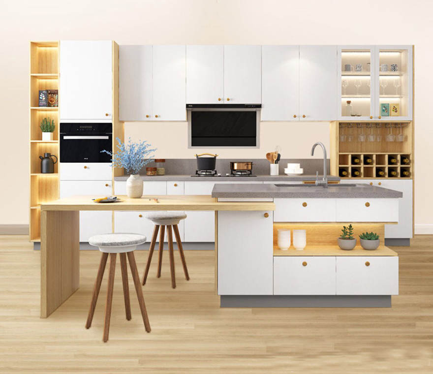 Gia chủ có thể linh hoạt thay đổi thiết kế hệ tủ bếp đẹp từ dáng chữ L, chữ I hoặc kết hợp thêm bàn đảo tiện dụng