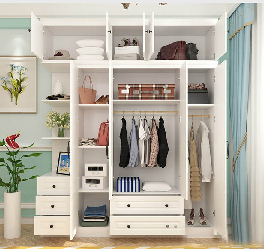 Tủ áo cánh mở gồm có nhiều ngăn chứa được chia khoa học giúp người dùng dễ dàng sắp xếp quần áo, đồ đạc