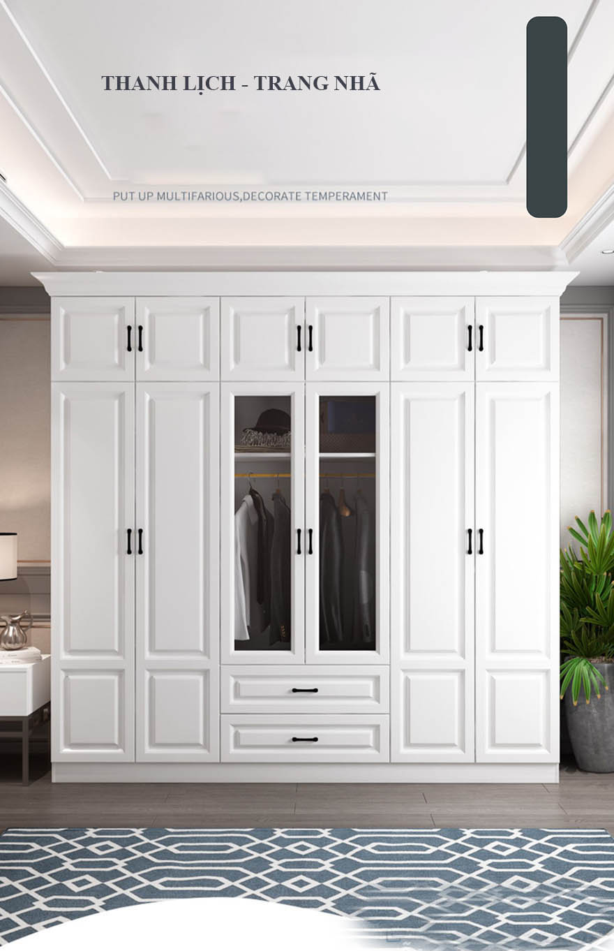 Tủ quần áo đơn giản đẹp thanh lịch TA-009 có thiết kế tối giản với màu sắc trang nhã rất ấn tượng. Chất liệu gỗ MDF phun sơn cao cấp được sử dụng để làm tủ quần áo này. Mẫu tủ quần áo đẹp đơn giản này thường được thiết kế để tiết kiệm không gian, với nhiều ngăn kéo và ngăn đựng để bạn có thể sắp xếp quần áo và phụ kiện một cách ngăn nắp. Bạn hãy cân nhắc và chọn mua mẫu tủ quần áo này cho phòng ngủ của mình nhé!